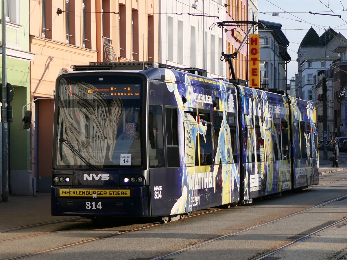 Bombardier Nr. 814 des Nahverkehr Schwerin in Schwerin.